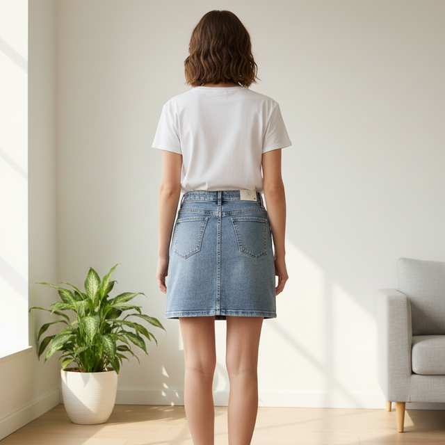 Mini-jupe en Jean Clair Stretch avec Fente – L’Indispensable