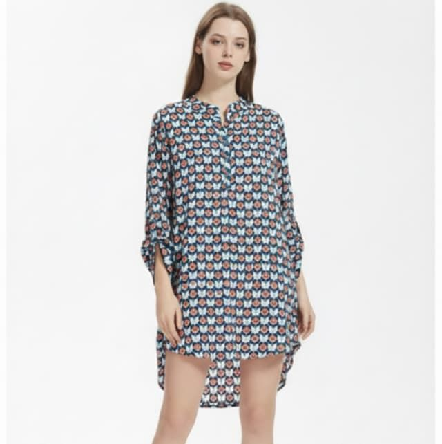 Tunique Liquette Femme à Motifs Géométriques - Coupe Fluide et Col Officier